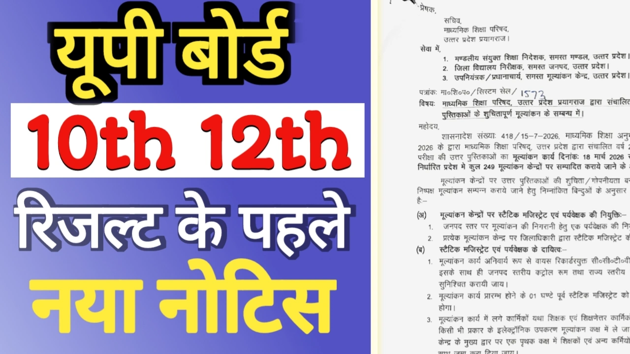 यूपी बोर्ड 10वीं 12वीं परीक्षा रिजल्ट के पहले महत्वपूर्ण नोटिस हुआ जारी UP Board Evaluation Notice Out 2026