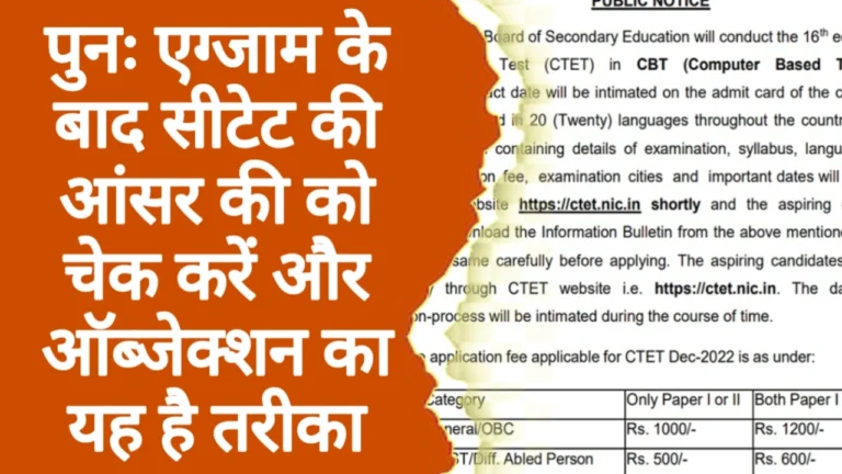 पुनः एग्जाम के बाद सीटेट की आंसर की को चेक करें और ऑब्जेक्शन का यह है तरीका CBSE CTET 2026 Answer Key